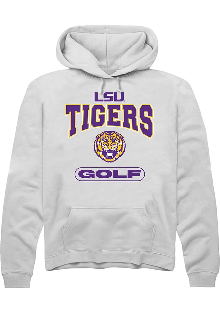 Put your Tigers spirit on display in this LSU Tigers Long Sleeve Hoodie! You'll be cozy on game day in this LSU Mens White Golf Hooded Sweatshirt. This Tigers Long Sleeve Hoodie features a digitally printed graphic. Wear your LSU Tigers spirit with pride in this great Mens Hooded Sweatshirt!