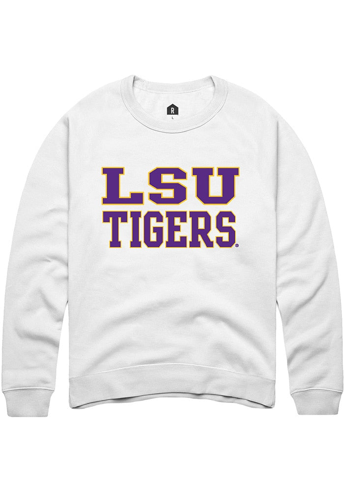 LSU Tigers Mens White Straight Block Long Sleeve Crew Sweatshirt