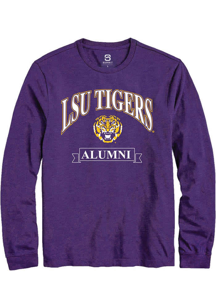 Show off your team pride in this LSU Tigers Purple Alumni Banner Long Sleeve T Shirt! This LSU Long Sleeve Tee features a digitally printed graphic. Make sure everyone knows you root for the Tigers with this Purple LSU T Shirt. Fight, Tigers!