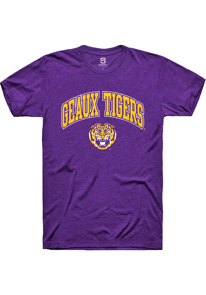Show off your team pride in this LSU Tigers Purple Arch Logo Short Sleeve T Shirt! This LSU Short Sleeve Tee features a digitally printed graphic. Make sure everyone knows you root for the Tigers with this Purple LSU T Shirt. Fight, Tigers!