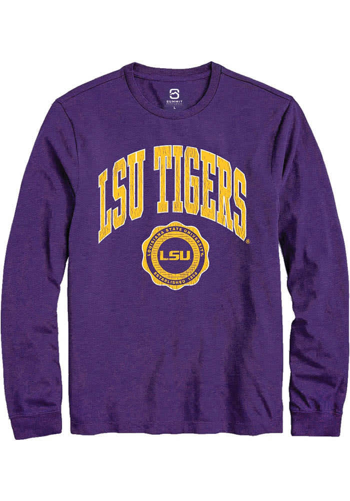 Show off your team pride in this LSU Tigers Purple Arch Seal Long Sleeve T Shirt! This LSU Long Sleeve Tee features a digitally printed graphic. Make sure everyone knows you root for the Tigers with this Purple LSU T Shirt. Fight, Tigers!