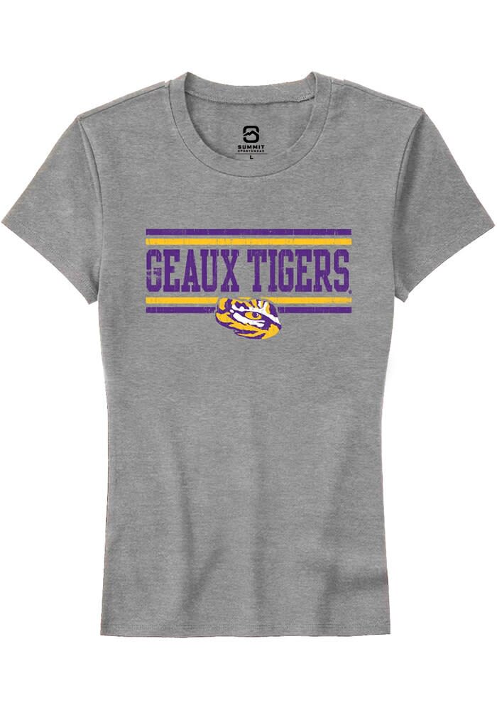 LSU Tigers Womens Grey Chant Bars Short Sleeve T-Shirt