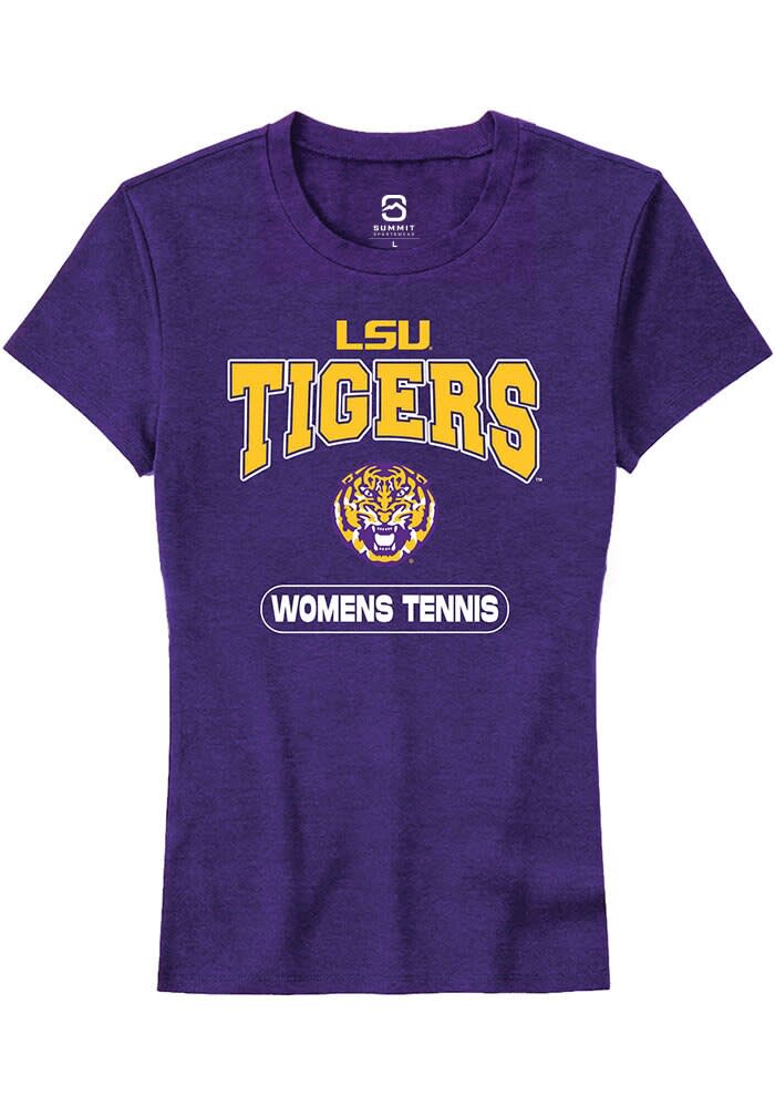 Let everyone know who you root for in this LSU Tigers Purple Womens Tennis Short Sleeve T-Shirt! This LSU Short Sleeve Tee features a digitally printed graphic.
