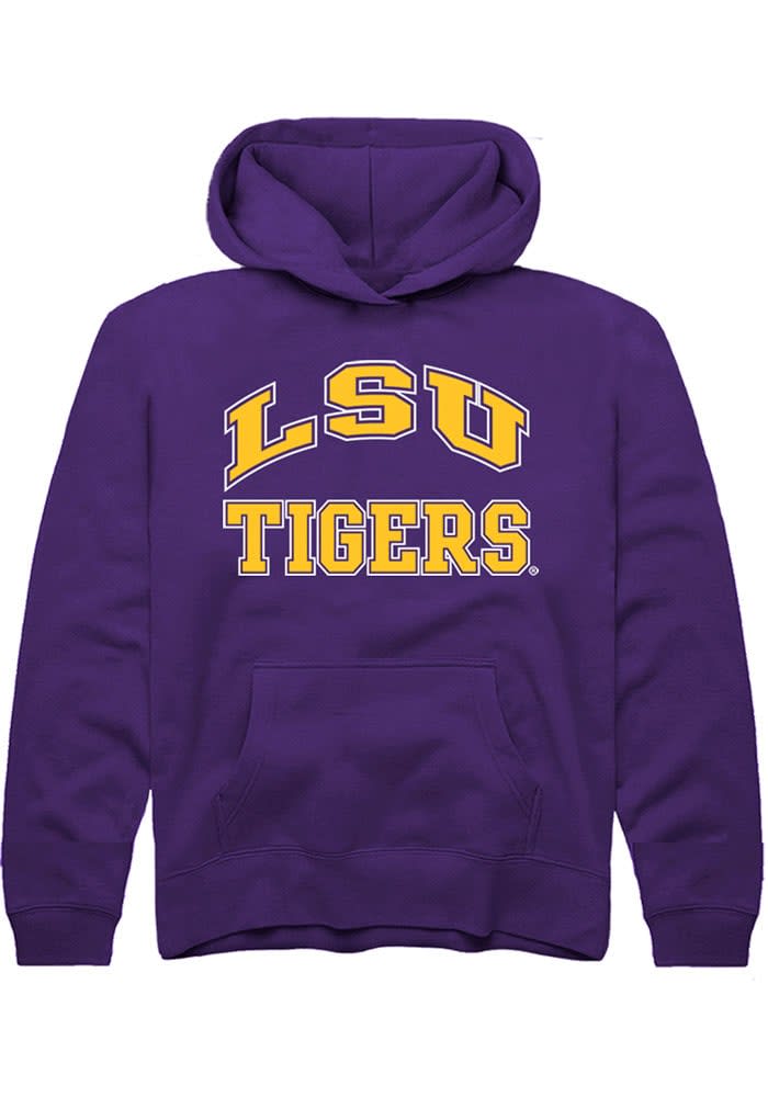 Those cold nights at the game won't keep your little LSU fan from cheering on the team in LSU Tigers Long Sleeve Hoodie! Give them this LSU Tigers Youth Purple Arch Stack Hooded Sweatshirt to keep warm in the stands. This Tigers Long Sleeve Hoodie features a digitally printed graphic.