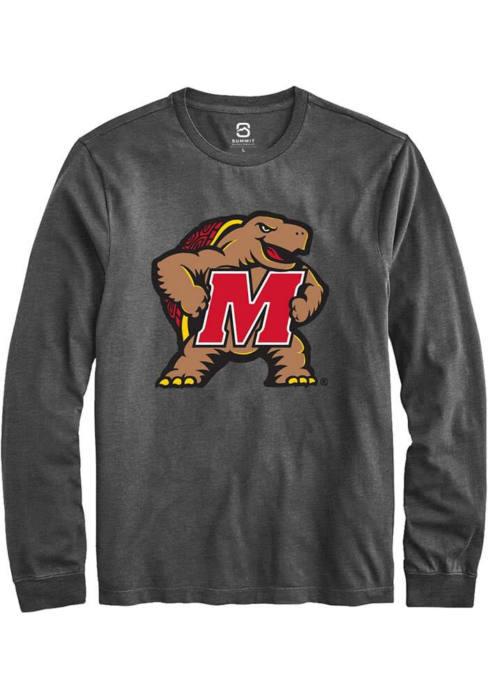 Show off your team pride in this Maryland Terrapins Charcoal Alt Logo Long Sleeve T Shirt! This Maryland Long Sleeve Tee features a digitally printed graphic. Make sure everyone knows you root for the Terrapins with this Charcoal Maryland T Shirt. Go Terps!