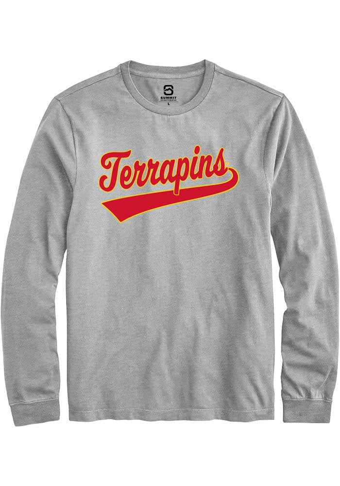 Show off your team pride in this Maryland Terrapins Grey Tail Long Sleeve T Shirt! This Maryland Long Sleeve Tee features a digitally printed graphic. Make sure everyone knows you root for the Terrapins with this Grey Maryland T Shirt. Go Terps!