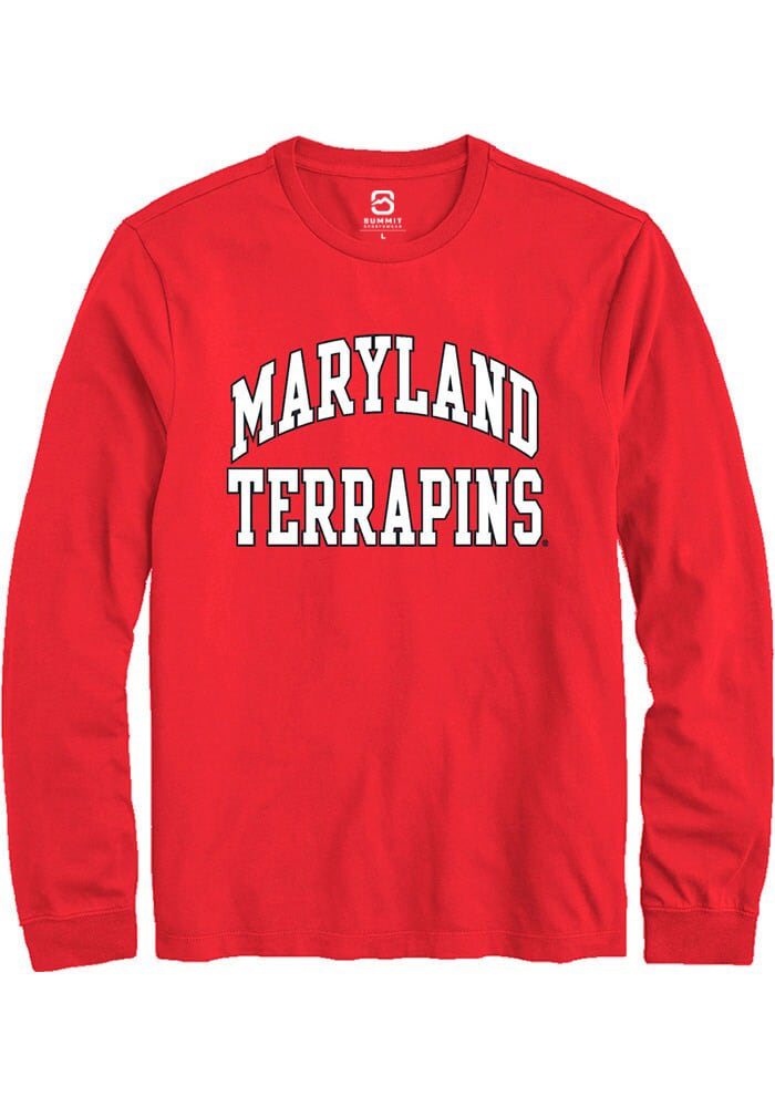 Show off your team pride in this Maryland Terrapins Red Arch Stack Long Sleeve T Shirt! This Maryland Long Sleeve Tee features a digitally printed graphic. Make sure everyone knows you root for the Terrapins with this Red Maryland T Shirt. Go Terps!