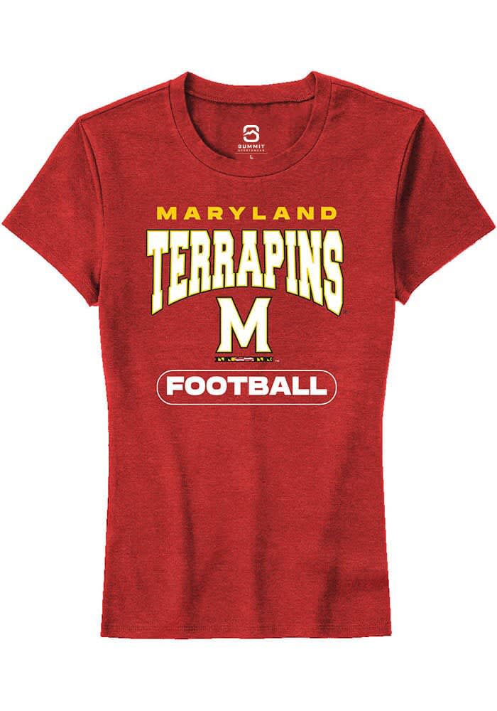 Maryland Terrapins Womens Red Football Short Sleeve T-Shirt