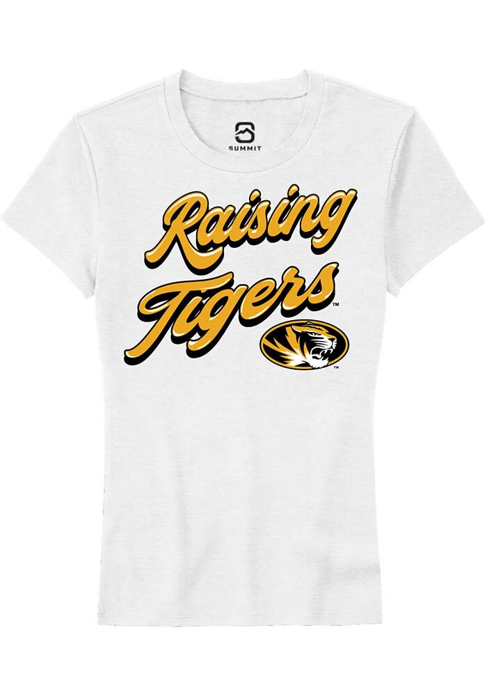 Missouri Tigers Womens White RAISING MASCOTS Short Sleeve T-Shirt