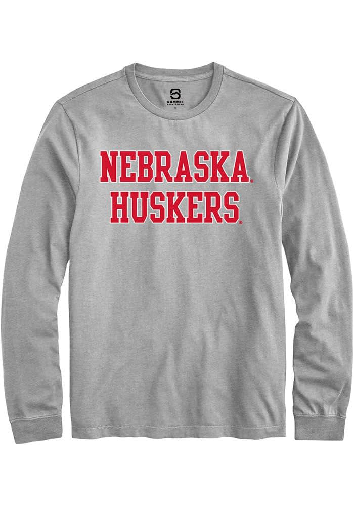 Nebraska Cornhuskers Grey Straight Block Long Sleeve T Shirt