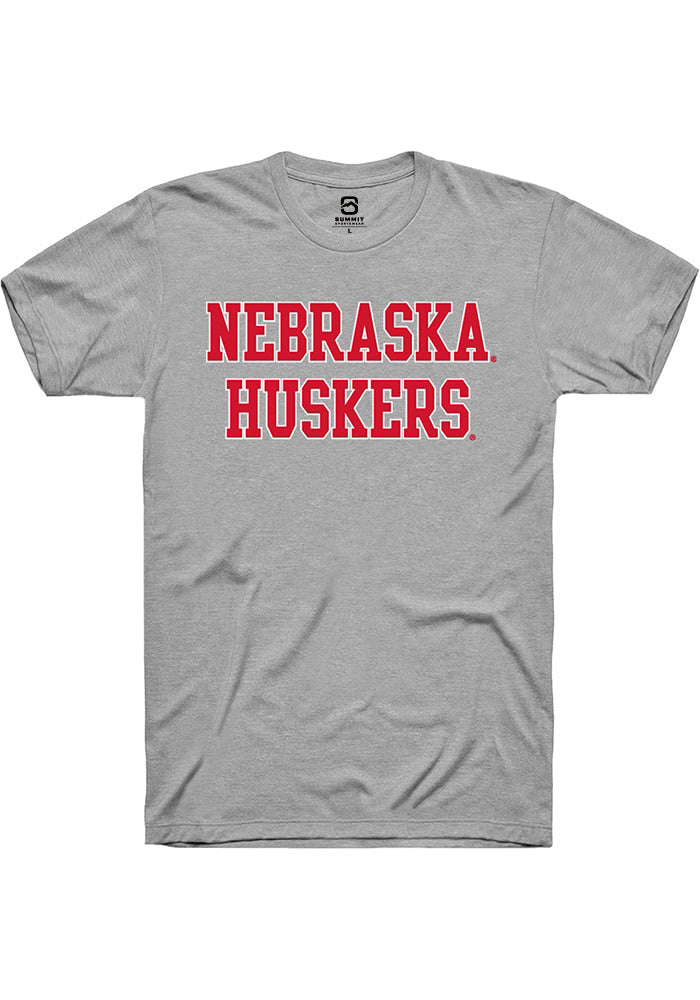 Nebraska Cornhuskers Grey Straight Block Short Sleeve T Shirt
