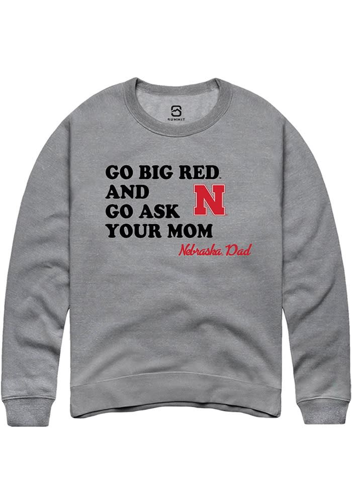 Head out in style with our Nebraska Cornhuskers Graphite Go Ask Your Mom Crew Sweatshirt! This Cornhuskers Long Sleeve Crew Sweatshirt features a team graphic. You'll be warm, comfortable and stylish as you head to class, the game or just out on the town in this Nebraska Crew Sweatshirt.