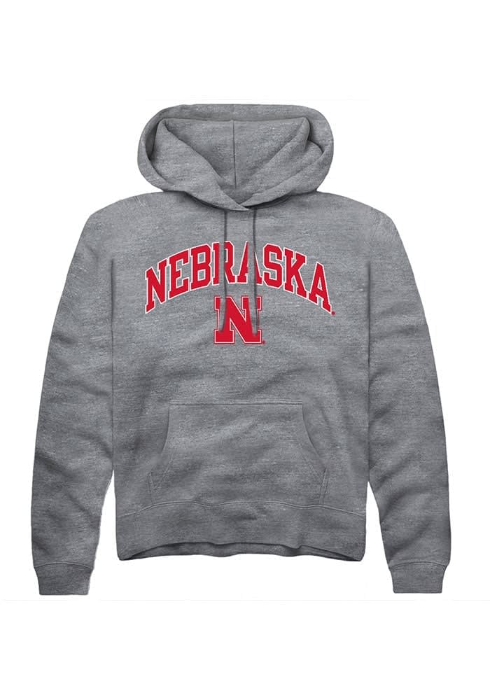 Nebraska Cornhuskers Mens Grey Arch Logo Long Sleeve Hoodie