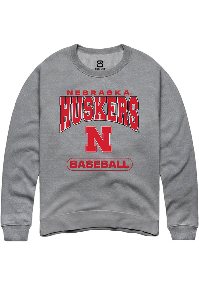 Nebraska Cornhuskers Mens Grey Baseball Long Sleeve Crew Sweatshirt