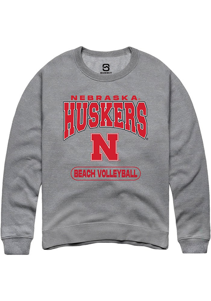 Nebraska Cornhuskers Mens Grey Beach Volleyball Long Sleeve Crew Sweatshirt