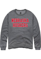 Nebraska Cornhuskers Mens Grey Straight Block Long Sleeve Crew Sweatshirt