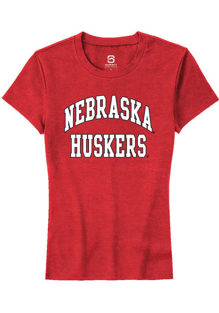 Nebraska Cornhuskers Womens Red Arch Stack Short Sleeve T-Shirt