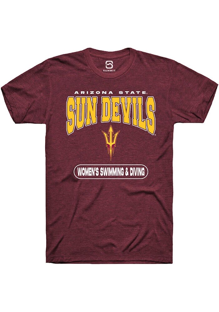Show off your team pride in this Arizona State Sun Devils Maroon Womens Swimming and Diving Short Sleeve T Shirt! This Arizona State Short Sleeve Tee features a digitally printed graphic. Make sure everyone knows you root for the Sun Devils with this Maroon Arizona State T Shirt. Go Devils!