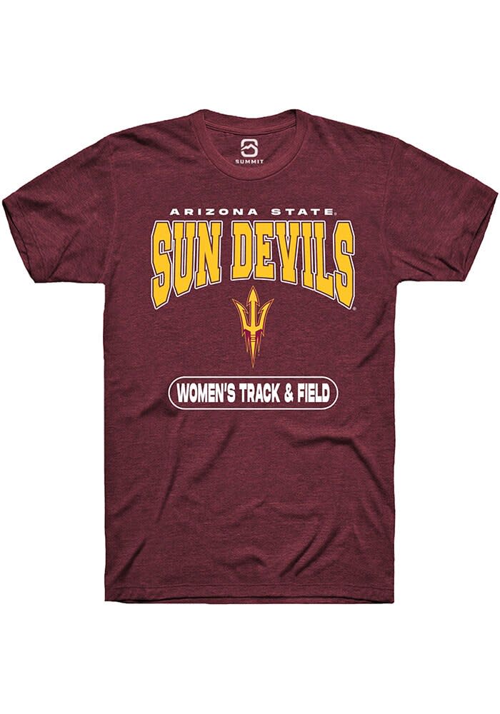Show off your team pride in this Arizona State Sun Devils Maroon Womens Track and Field Short Sleeve T Shirt! This Arizona State Short Sleeve Tee features a digitally printed graphic. Make sure everyone knows you root for the Sun Devils with this Maroon Arizona State T Shirt. Go Devils!