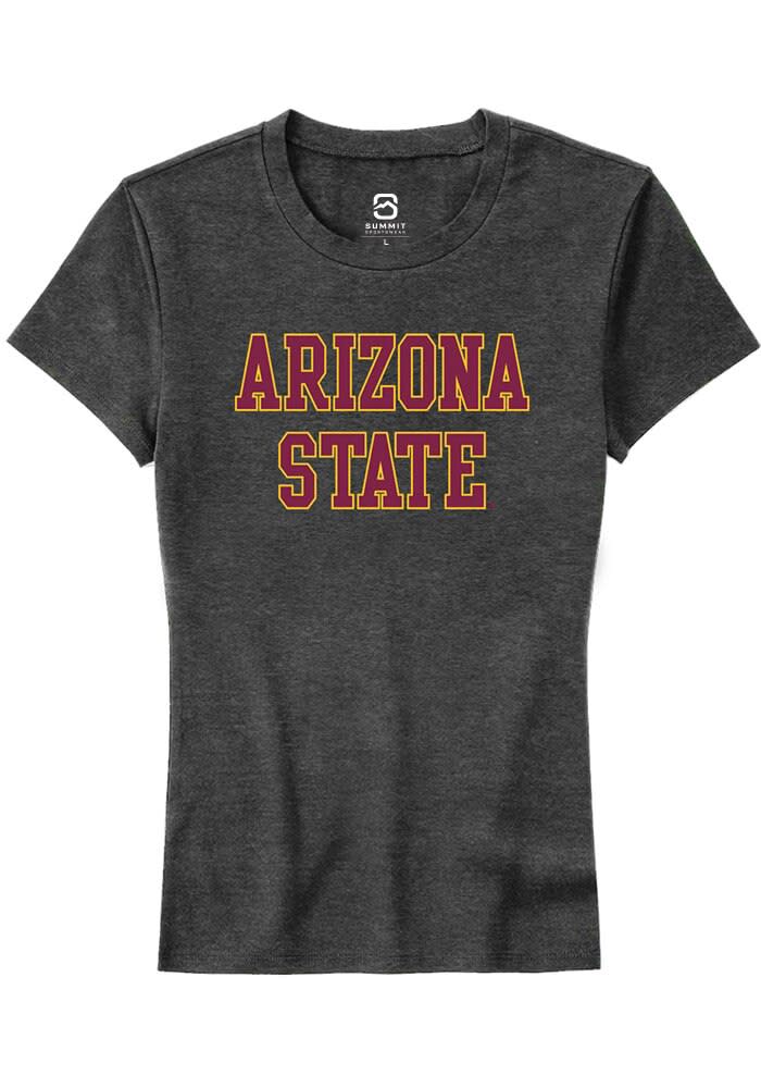 Arizona State Sun Devils Womens Charcoal Straight Block Short Sleeve T-Shirt
