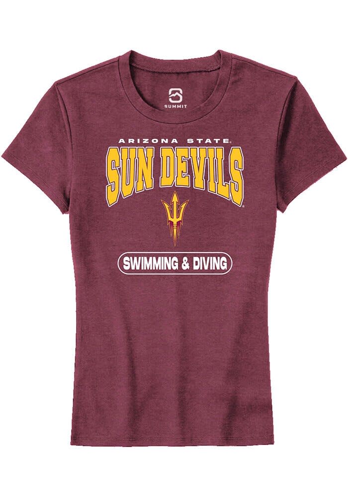 Arizona State Sun Devils Womens Maroon Swimming and Diving Short Sleeve T-Shirt