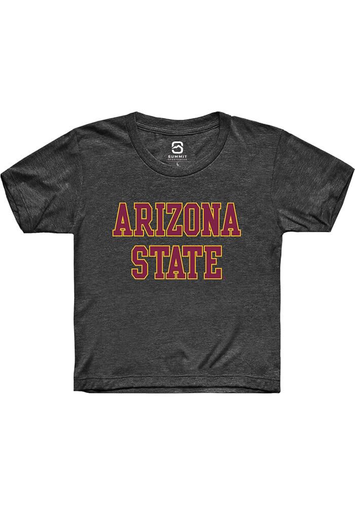 Your future Arizona State Sun Devils will be ready for the game with this Arizona State Sun Devils Youth Charcoal Short Sleeve Tee. This Straight Block T-Shirt features a digitally printed graphic.