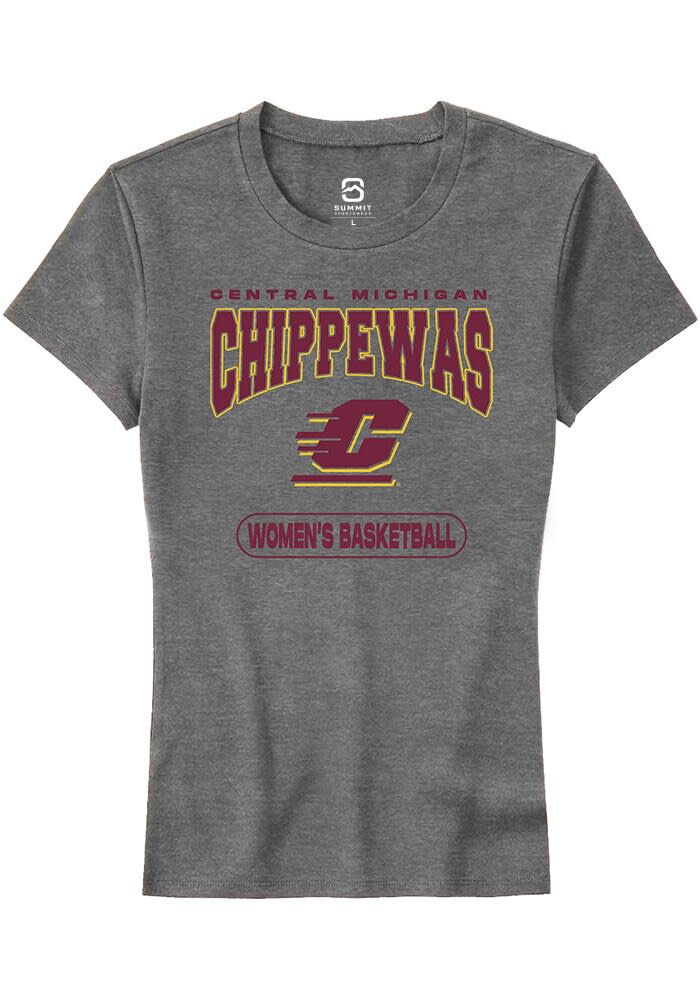 Central Michigan Chippewas Womens Grey Women's Basketball Short Sleeve T-Shirt