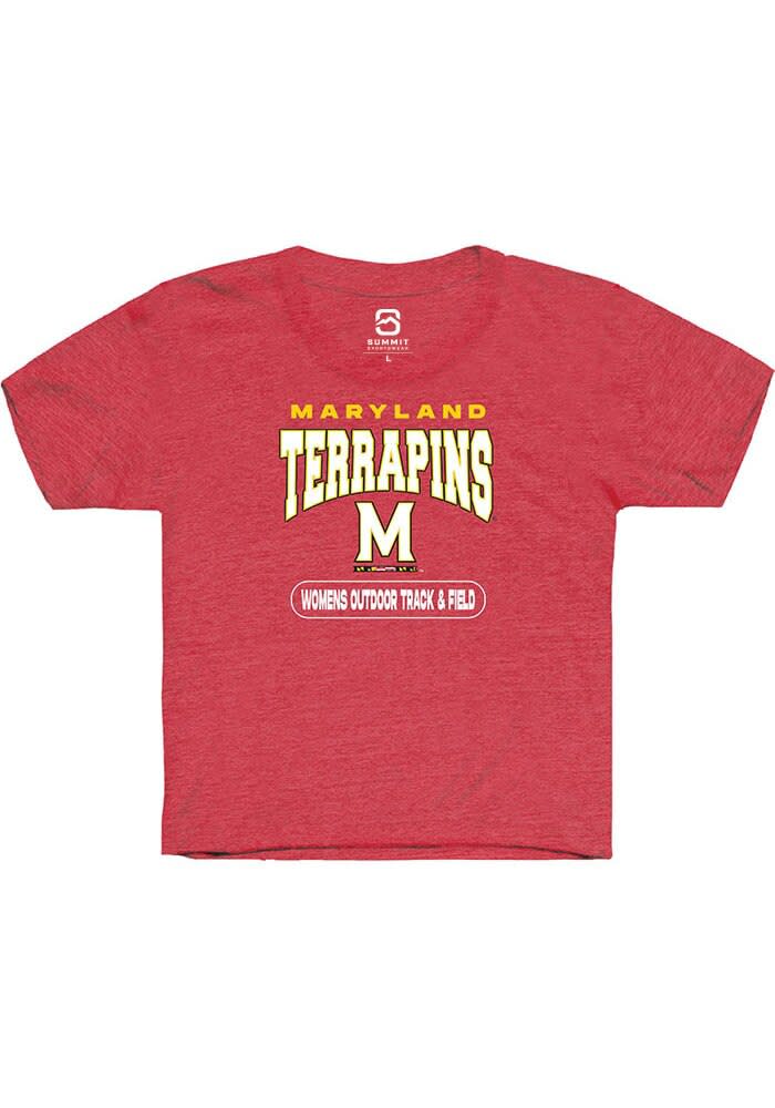 Maryland Terrapins Youth Red Womens Outdoor Track & Field Short Sleeve T-Shirt