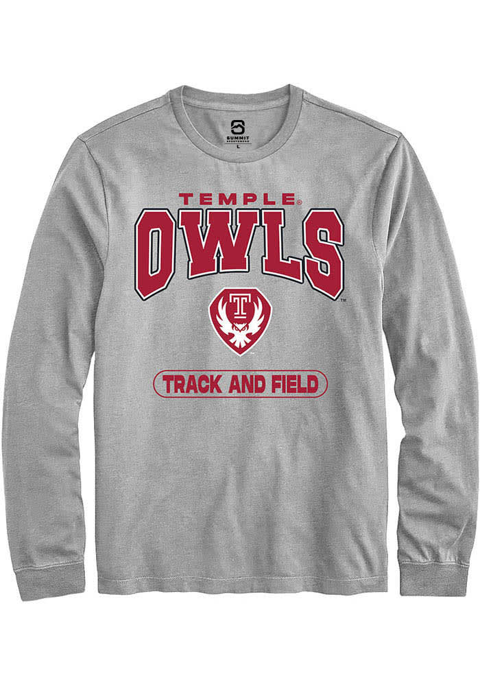 Show off your team pride in this Temple Owls Grey Track and Field Long Sleeve T Shirt! This Temple Long Sleeve Tee features a digitally printed graphic. Make sure everyone knows you root for the Owls with this Grey Temple T Shirt. Go Owls!