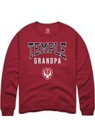 Temple Owls Mens Cardinal Grandpa Long Sleeve Crew Sweatshirt