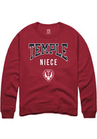 Temple Owls Mens Cardinal Niece Long Sleeve Crew Sweatshirt