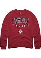Temple Owls Mens Cardinal Sister Long Sleeve Crew Sweatshirt