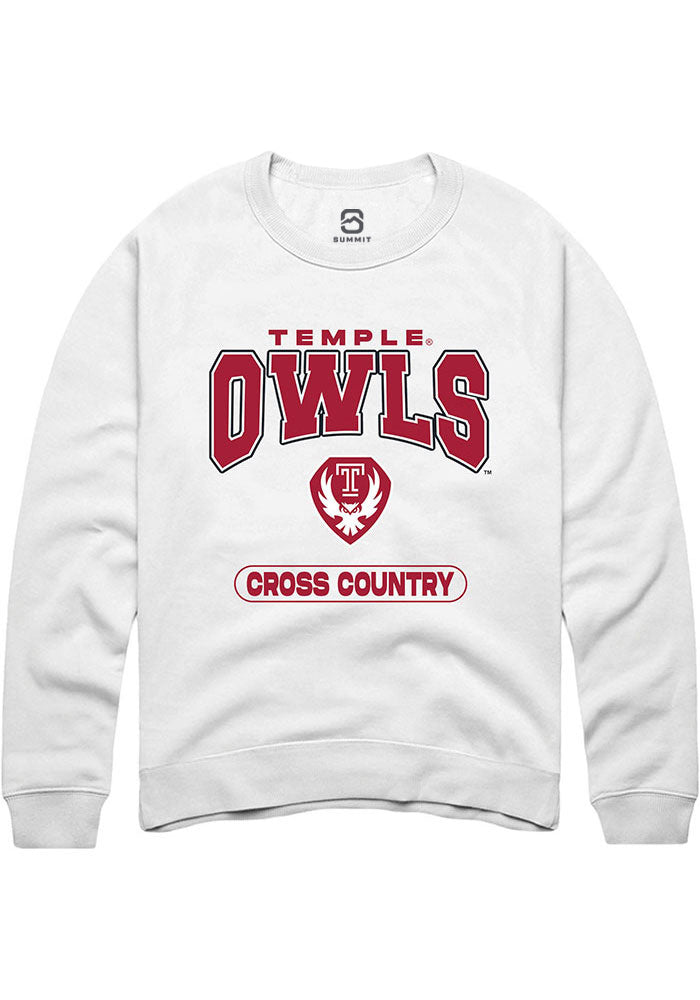 Temple Owls Mens White Cross Country Long Sleeve Crew Sweatshirt