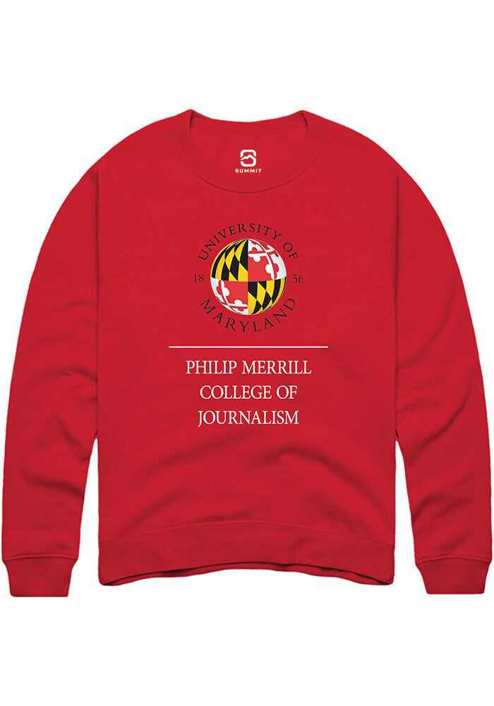 Maryland Terrapins Mens Red Philip Merrill College of Journalism Long Sleeve Crew Sweatshirt
