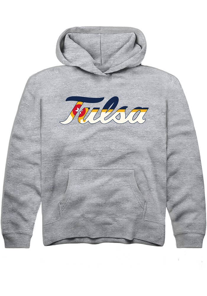 Those cold nights at the game won't keep your little Tulsa fan from cheering on the team in Tulsa Golden Hurricane Long Sleeve Hoodie! Give them this Tulsa Golden Hurricanes Youth Grey City Flag Hooded Sweatshirt to keep warm in the stands. This Golden Hurricanes Long Sleeve Hoodie features a digitally printed graphic.