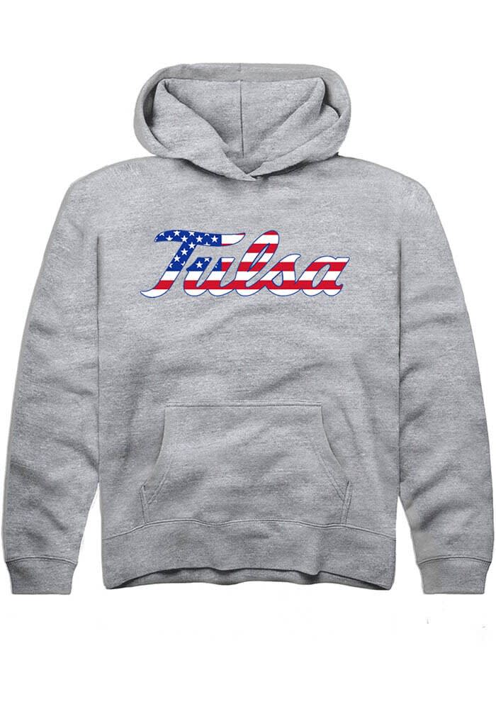 Tulsa Golden Hurricane Youth Grey US Flag Long Sleeve Hoodie