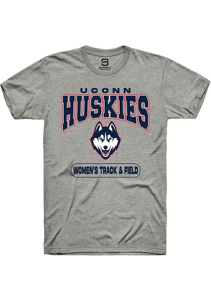 UConn Huskies Unisex Dark Grey Heather Womens Track And Field Short Sleeve T-Shirt