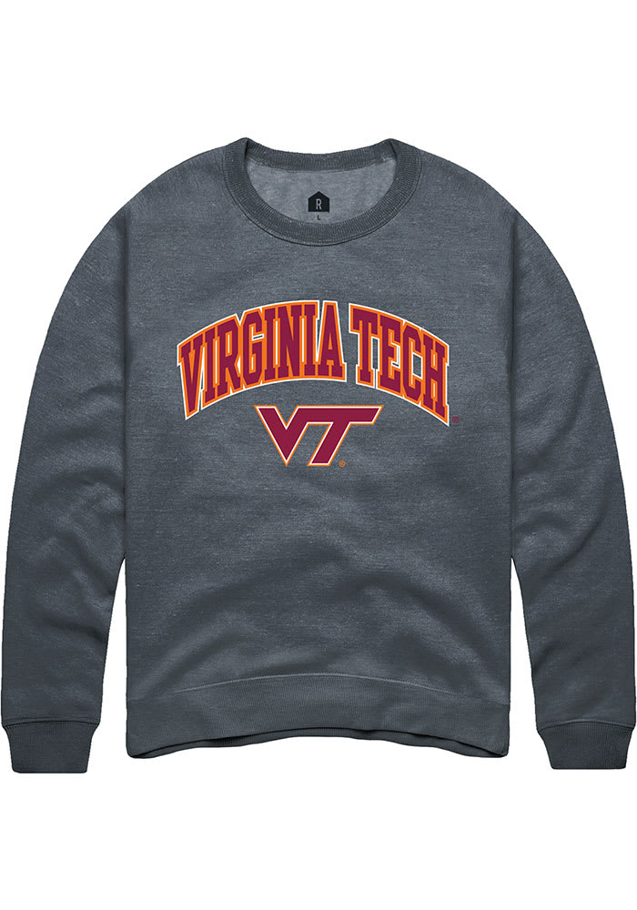Virginia Tech Hokies Mens Charcoal Arch Logo Long Sleeve Crew Sweatshirt