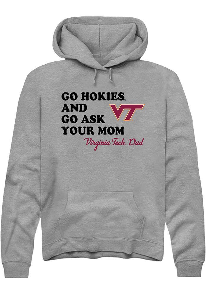 Put your Hokies spirit on display in this Virginia Tech Hokies Long Sleeve Hoodie! You'll be cozy on game day in this VT Mens Graphite Go Ask Your Mom Hooded Sweatshirt. This Hokies Long Sleeve Hoodie features a team graphic. Wear your Virginia Tech Hokies spirit with pride in this great Mens Hooded Sweatshirt!
