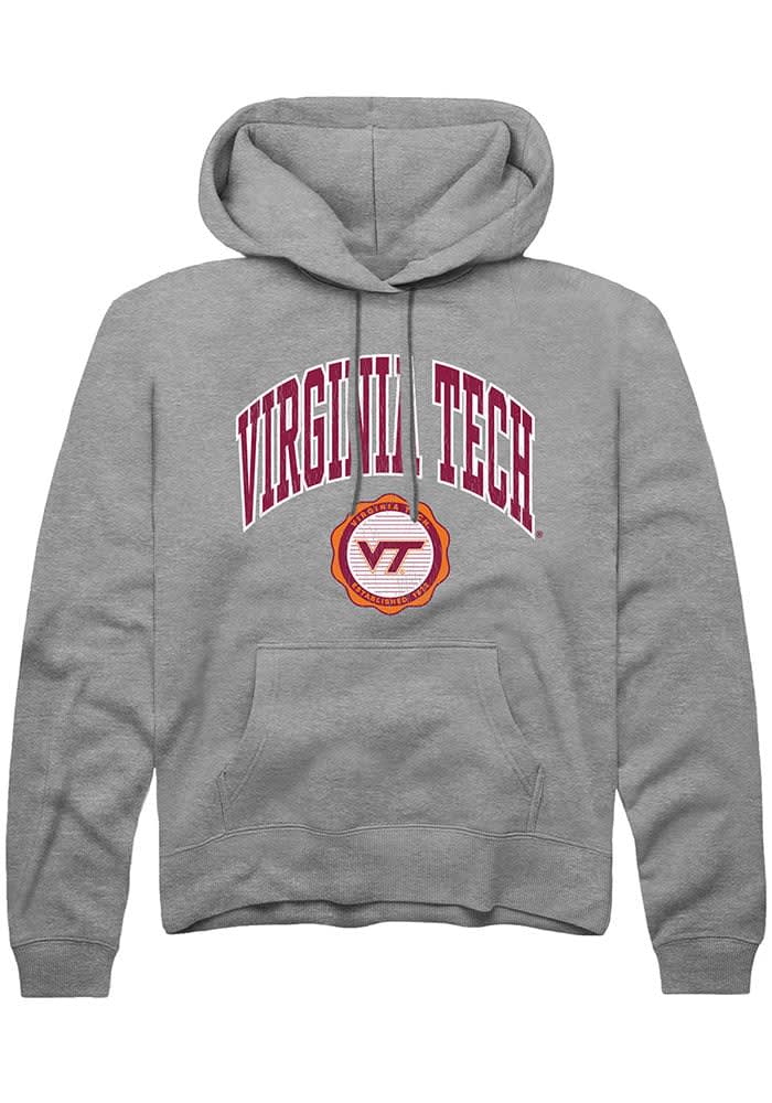 Virginia Tech Hokies Mens Grey Arch Seal Long Sleeve Hoodie