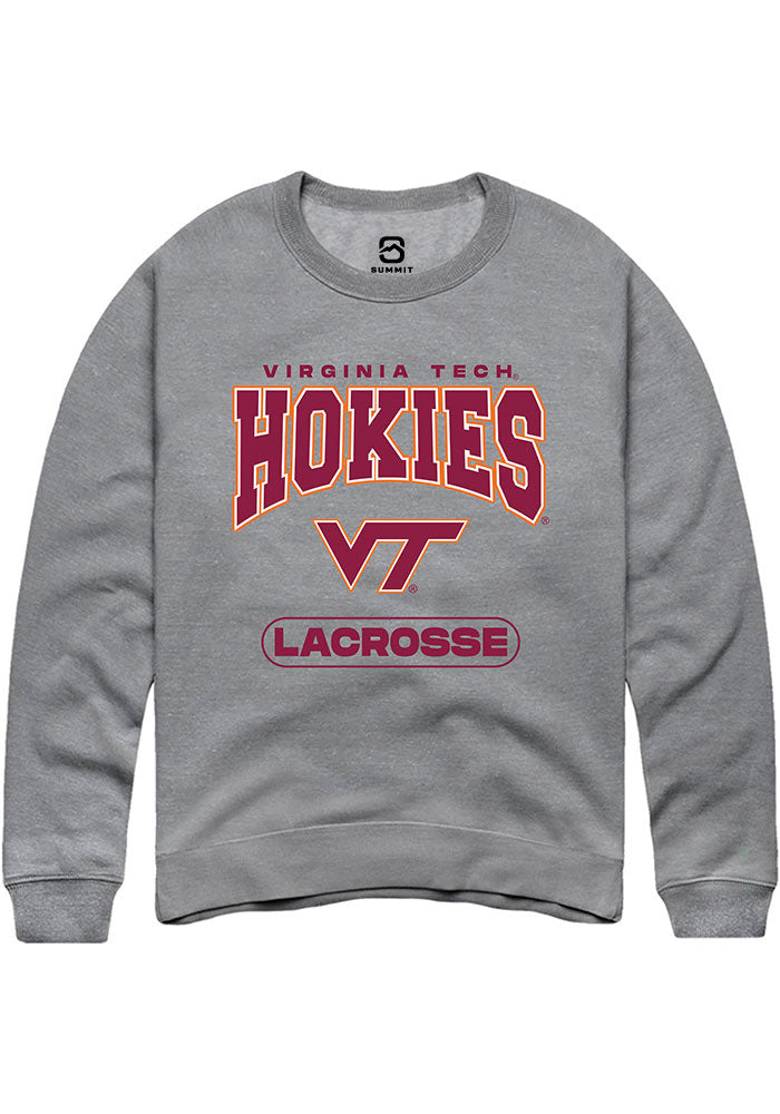Virginia Tech Hokies Mens Grey Lacrosse Long Sleeve Crew Sweatshirt