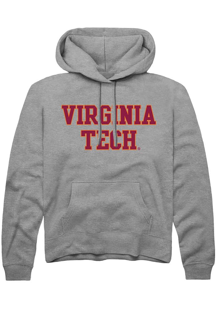 Virginia Tech Hokies Mens Grey Straight Block Long Sleeve Hoodie