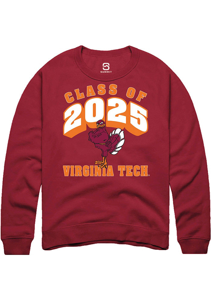 Virginia Tech Hokies Mens Maroon Class of 2025 Long Sleeve Crew Sweatshirt