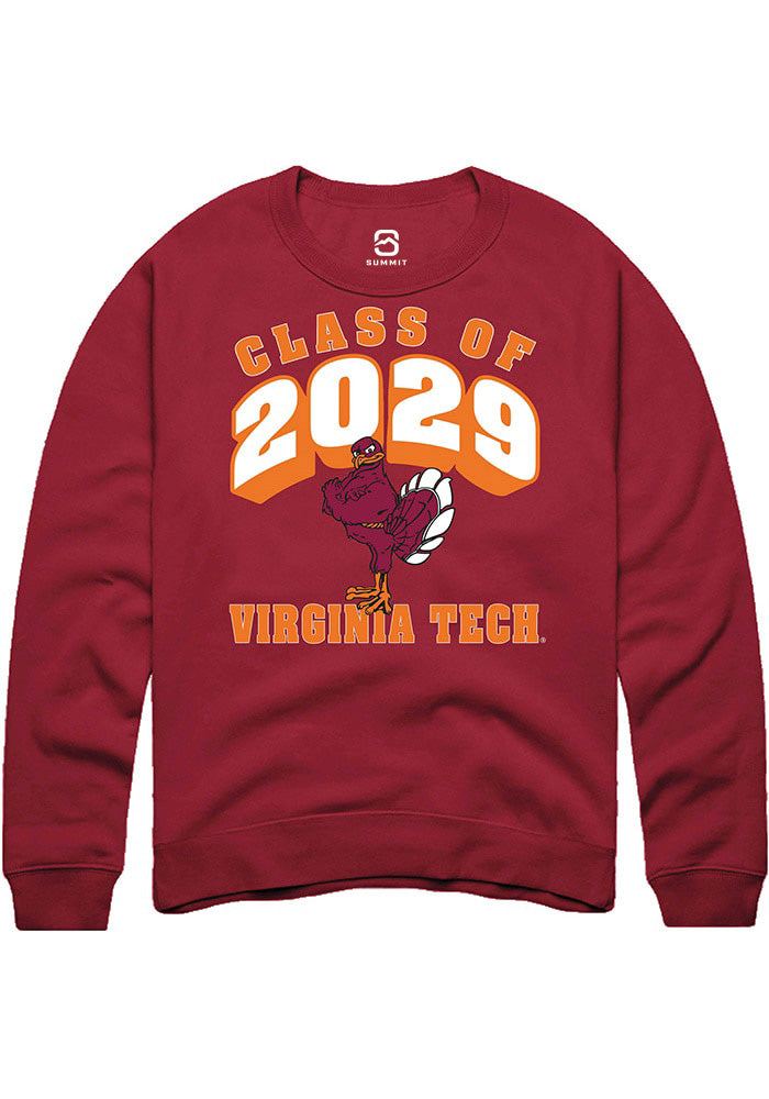 Virginia Tech Hokies Mens Maroon Class of 2029 Long Sleeve Crew Sweatshirt