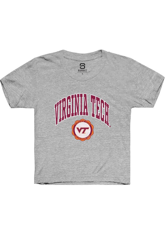 Your future Virginia Tech Hokies will be ready for the game with this Virginia Tech Hokies Youth Grey Short Sleeve Tee. This Arch Seal T-Shirt features a digitally printed graphic.
