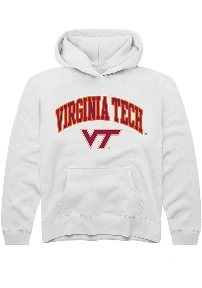 Those cold nights at the game won't keep your little VT fan from cheering on the team in Virginia Tech Hokies Long Sleeve Hoodie! Give them this VT Hokies Youth White Arch Logo Hooded Sweatshirt to keep warm in the stands. This Hokies Long Sleeve Hoodie features a digitally printed graphic.