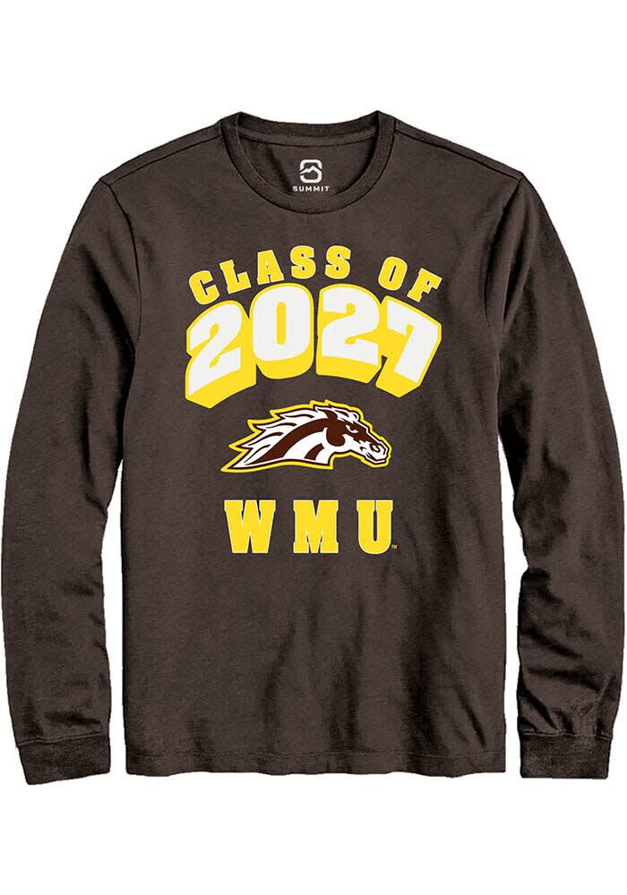 Show off your team pride in this Western Michigan Broncos Brown Class of 2027 Long Sleeve T Shirt! This WMU Broncos Long Sleeve Tee features a team graphic. Make sure everyone knows you root for the Broncos with this Brown WMU Broncos T Shirt. Go Broncos!