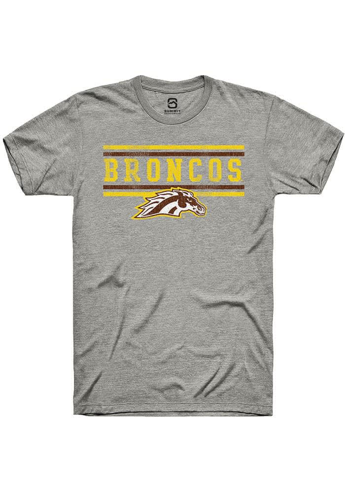 Show off your team pride in this Western Michigan Broncos Grey Bars Short Sleeve T Shirt! This WMU Broncos Short Sleeve Tee features a digitally printed graphic. Make sure everyone knows you root for the Broncos with this Grey WMU Broncos T Shirt. Go Broncos!