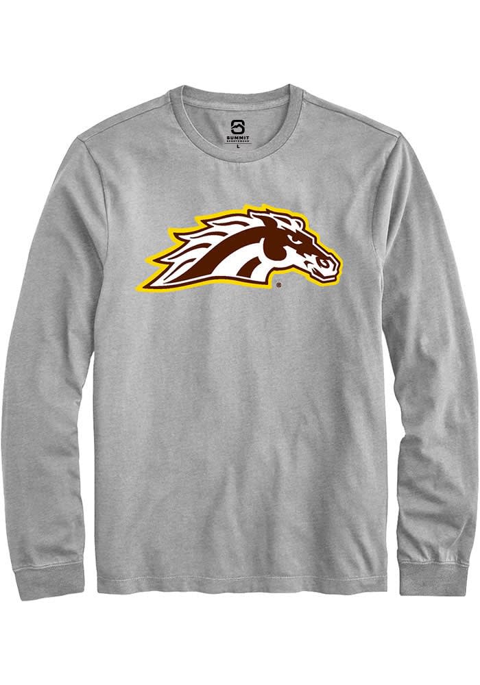 Show off your team pride in this Western Michigan Broncos Grey Primary Logo Long Sleeve T Shirt! This WMU Broncos Long Sleeve Tee features a digitally printed graphic. Make sure everyone knows you root for the Broncos with this Grey WMU Broncos T Shirt. Go Broncos!