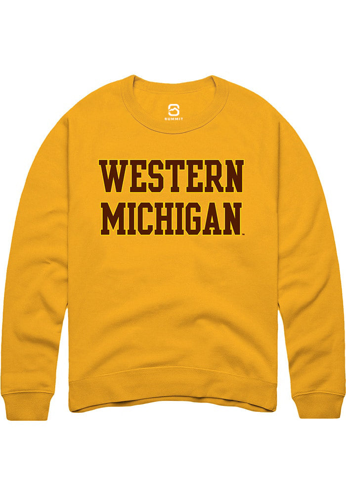 Western Michigan Broncos Mens Gold Straight Block Long Sleeve Crew Sweatshirt